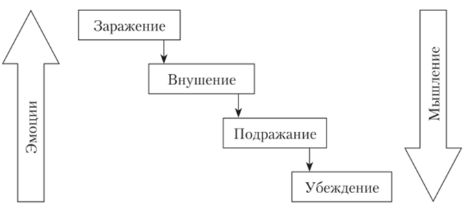 Рис. 2. Соотношение механизмов воздействия на личность и их связь с эмоциями и мышлением
