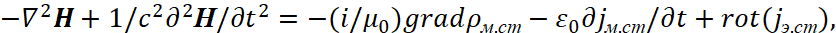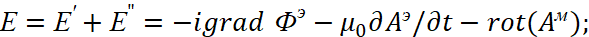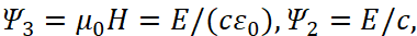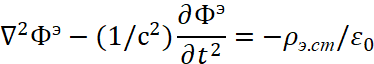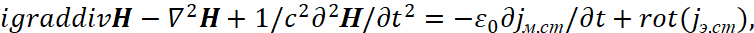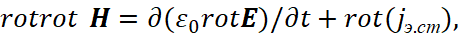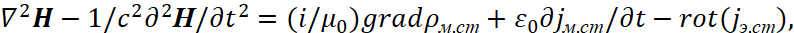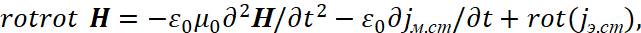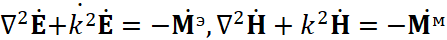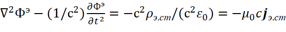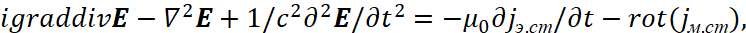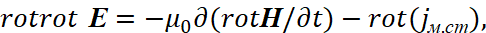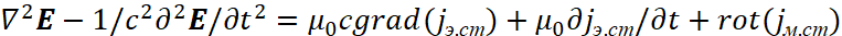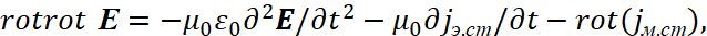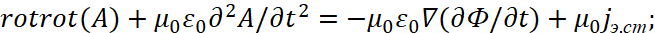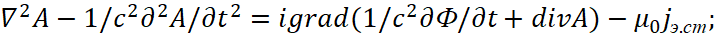 Соответственно мы имеем преобразования электромагнитных составляющих в волновые уравнения в виде: