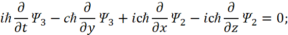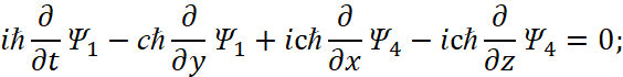 . Мы видим, что полученный вид уравнений в частных производных уже соответствует виду некоторых уравнений из системы Дирака (31).