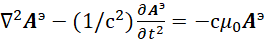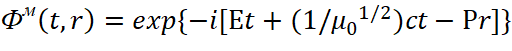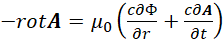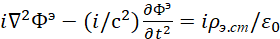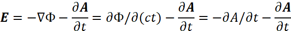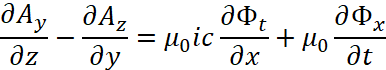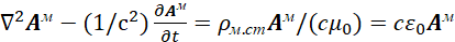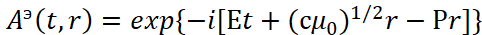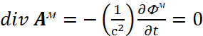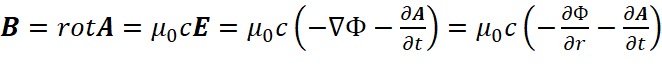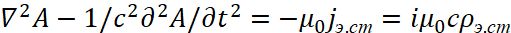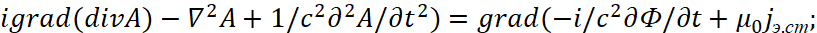 Иными словами, мы за счёт мнимой единицы сменили систему наблюдения, но при этом переход к волновому уравнению остался прежним. Следует отметить, что в классической электродинамике для перехода к волновому виду от векторного потенциала А используется также математическое уравнение:
