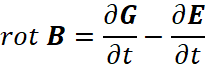 , и имеет необходимую замкнутость для своего отдельного существования, исходя из наличия операции ротора (rot). Надо отметить, что в противоположности замкнутость (rot) по координатам длины переходит в замкнутость по оставшейся координате длины и времени, и наоборот. Понятно, что меньше 4-х ортогональных составляющих в уравнении (92) при описании объектов мироздания иметь нельзя, так как приходим к парадоксу совпадения пути действия и противодействия. Отсутствие одинакового вида дифференциальных членов для магнитных и электрических составляющих говорит о представлении их как противоположностей. Одновременно вид уравнения (92) может быть выражен в базисном разложении в соответствии с общей формулой мироздания, так как в противном случае он оказывается независимым объектом, замкнутым сам на себя. Действительно в соответствии с [1, с. 6-42] при необходимом базисном разложении через функции (иначе закон мироздания (1) не получить), мы можем представить, что