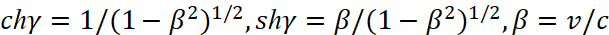 Формула энергии Эйнштейна также напрямую соответствует и выражению через гиперболические функции косинуса и синуса. Действительно, учитывая классическое релятивистское соотношение между массой и энергией, можно записать: