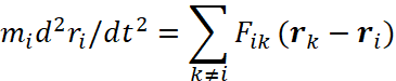 Как известно, уравнения механики Ньютона для замкнутой системы материальных точек с массами mi, между которыми действуют силы Fik(i≠k), зависящие от относительных расстояний, можно представить: