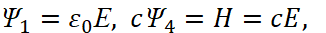 Иными словами, мы получаем физические аналоги реализаций функций Ψ1 и Ψ4, а также Ψ3 и Ψ2, выраженных через реальные электромагнитные составляющие по (93) с учётом констант электрической и магнитной проницаемости, то есть состояния среды. Это означает, что усовершенствованные уравнения Максвелла отражают реальные объекты в виде электронных и мюонных нейтрино и антинейтрино.