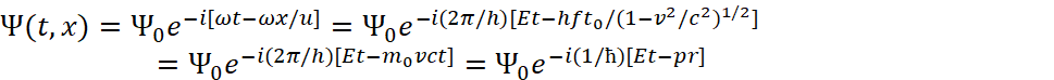 Которые должны воздействовать на волновую функцию Луи де Бройля Ψ, и которая, в свою очередь, характеризует вероятность. Необходимость использования таких операторов мы показали в [1, с. 6-42]. При этом волновые функции Ψ Луи де Бройля при соответствии уравнению энергии Эйнштейна имеют вид [10, с. 31]: