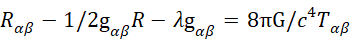 – тензор Риччи, получающийся из тензора кривизны пространства и времени посредством свёртки его по паре индексов, R – скалярная кривизна, то есть свёрнутый тензор Ричи, составленный из связностей – производных метрического тензора