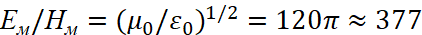 константы магнитной и электрической проницаемости окружающей среды. При этом, в классической электродинамике в системе измерения СИ используется формула для вычисления волнового сопротивления среды в виде [33, с. 299]: