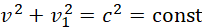 Можно продолжить замену переменных, что часто используется в квантовой механике. Для этого член l2/l02, умножим на член t02/ t02, а член t02/ t2 на l02/l02. В итоге с учётом l02/ t02=c2, и l2/ t02=v2, l02/ t2=v12, получаем уравнение окружности. Ортогональность величин v и v1 не вызывает сомнений, так как изначальными переменными были длина и время.