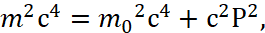 Если умножить оба члена указанного уравнения на величину c4 (что не меняет сути уравнения), то получим формулу энергии Эйнштейна в квадрате, которую изначально использовал Дирак при «линеаризации» и получении своей системы уравнений, что будет показано несколько ниже.
