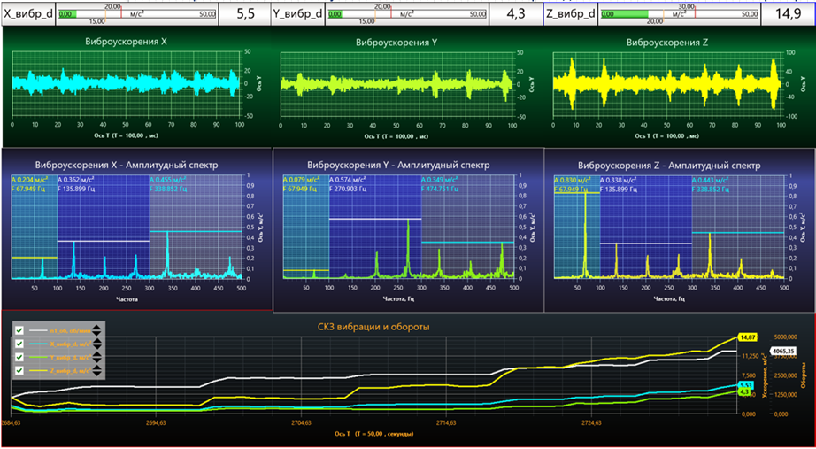 Разработана и испытана высокопроизводительная российская система виброизмерений на базе PXIe, обеспечивающая регистрацию 200 каналов с частотой до 625 кГц на канал. Проведённые эксперименты подтвердили её стабильность, точность и пригодность для проведения вибрационных испытаний авиационных и ракетных конструкций.