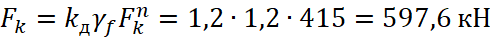 Рассмотрим загружения № 2-3. Расчетная нагрузка для двухколесного крана грузоподъёмность 50 т, приходящая на одно колесо.