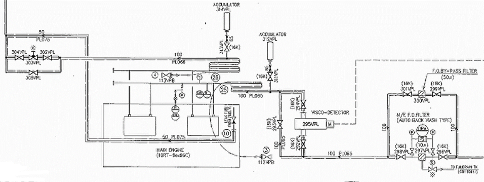 Рис. 1. Судовая топливная система с азотными гидроаккумуляторами