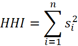 3. Оценка концентрации (HHI). Индекс Херфиндаля–Хиршмана рассчитывается как: