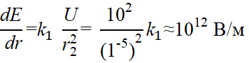 При условии, что напряжение составляет 100 В, а радиус зарождения разряда 1 мкм, то возникающая при этом напряжённость достигает 1012 В/м. Под действием такой напряжённости происходит ионизация областей вокруг первичного разряда с последующим образованием стримера. Каждый образовавшийся стример порождает как минимум один, а то и больше новых стримеров. Объединяясь в замкнутую цепь, они создают все условия для образования лидера, при этом выполняются все моменты отражённые в работе [10, с. 867-894], а именно - стримеры появляются достаточно близко и почти одновременно, а рост каналов обеспечен достаточной напряжённостью поля, которая возникает локально вследствие предыдущей разрядной активности. Образовавшийся лидер (лидеры) ступенчато продвигается (продвигаются) от облака к земле, образуя ветвистую структуру разряда. Каждая ступень лидера излучает радиоимпульс, а при достижении определённой энергии разряда и достижения напряженности электрического поля более 1016 В/м, каждая последующая ступень порождает гамма-излучение. Впервые всплески рентгеновского излучения с энергиями в десятки мегаэлектронвольт были обнаружены в 1994 году обсерваторией Комптона, при изучении грозовой активности в атмосфере Земли [18, с. 1313-1316]. Эти излучения подтверждаются результатами работы [6], в которой экспериментально установлено, что грозовые облака изучают «сотни или тысячи» коротких мощных радиоимпульсов непосредственно перед ударом молнии.