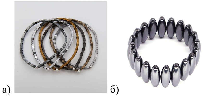 Рис. 1. Ювелирное изделие из гематита (а), магнетита (б)
