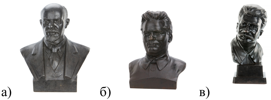 Рис. 4. Художественные изделия, изготовленные на Кусинском чугоноплавильном заводе: Бюст «В. И. Ленин» (а), Бюст «С. М. Киров» (б), Бюст «Портрет Сталина И. В.» (в)