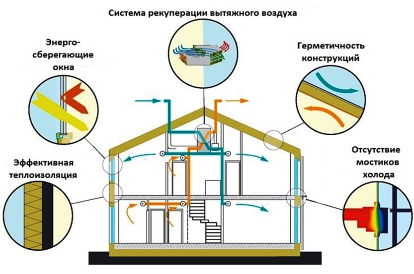 Климат-контроль. В обычных домах при стандартных системах вентиляции теряется до 50% тепла. Современные системы климат-контроля, устанавливаемые в активных домах, позволяют удержать до 90% тепла.