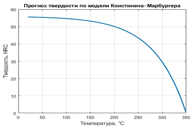 Прогноз твёрдости строится на предположении, что итоговая твёрдость пропорциональна доле мартенсита: