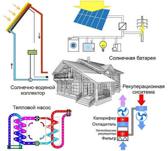 При проектировании пассивных домов акцент делается на рациональном использовании энергетических ресурсов и уменьшении теплопотерь, а не на применении возобновляемых энергетических ресурсов. B идеальном варианте пассивный дом должен представлять собой независимую энергосистему, которая совершенно не требует расходов на поддержание комфортного температурного режима.