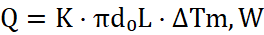 To determine Q, it is necessary to know the distribution of K and ΔT over the heat exchange surface. For single-phase heat carriers, the heat transfer coefficient usually changes insignificantly and therefore is taken as constant over the entire heat exchange surface. Then: