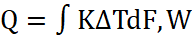 Where K is the heat transfer coefficient, W/(m²·K); ΔT = TH - TC is the current temperature difference. The total heat flux through the heat exchange surface: