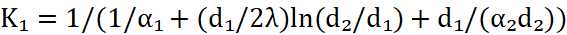 Where α₁, α₂ are heat transfer coefficients inside and outside the tube, W/(m²·K); d₁ and d₂ are internal and external diameters.
