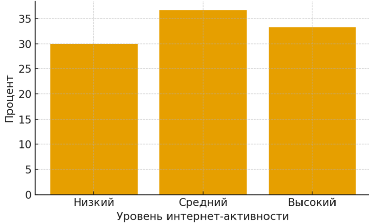 Рис. Распределение подростков по уровням интернет-активности (%)