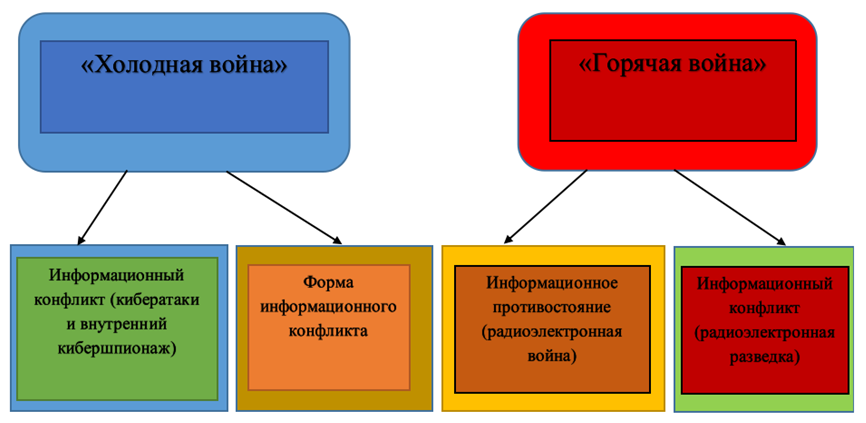 «Холодная война» – информационный конфликт – это скрытый вид информационного противоборства, который называется информационно-технологическим подавлением – это достижение временного или постоянного снижения эффективности или полного прекращения функционирования информационных систем и технологий противника. Одним из методов такого подавления является внедрение вредоносного программного обеспечения.