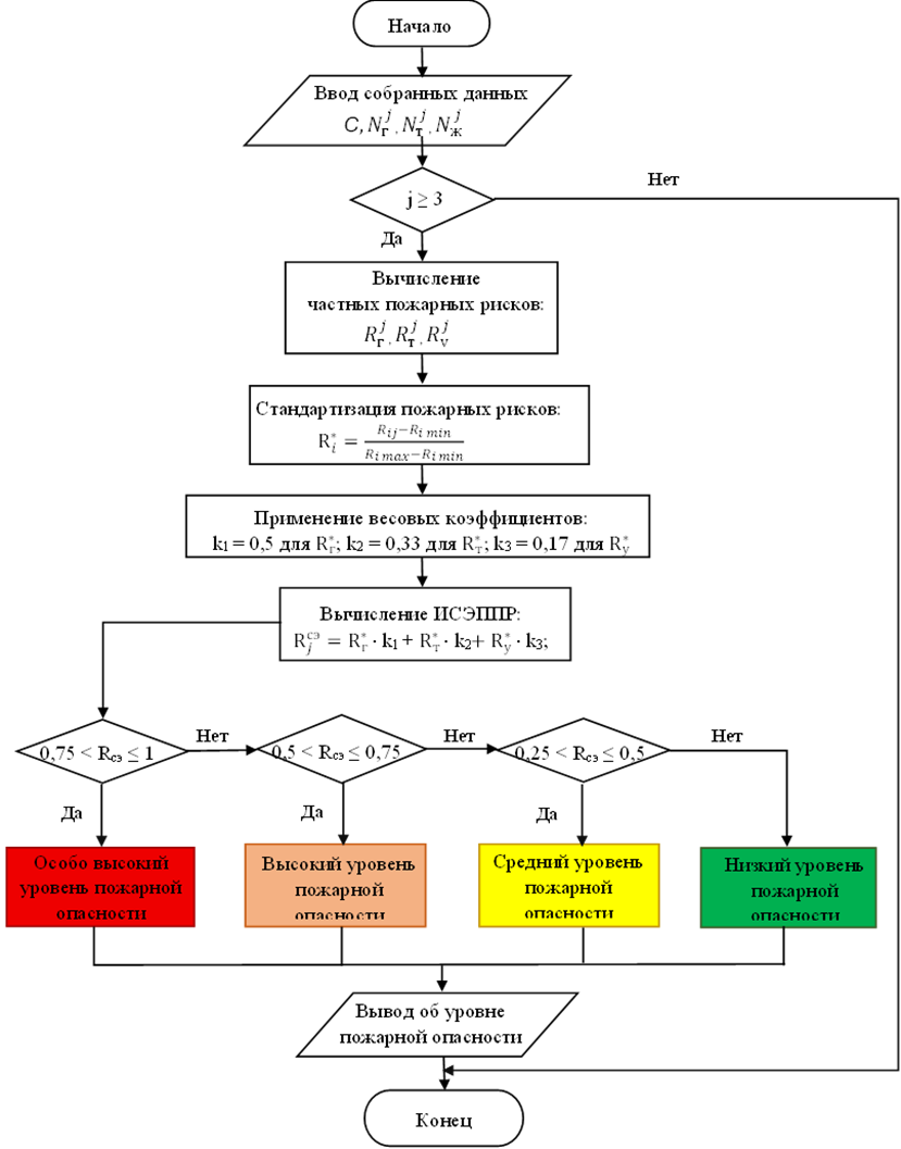 Рис. 1. Блок-схема алгоритма оценки уровня пожарной опасности в административно-территориальных единицах