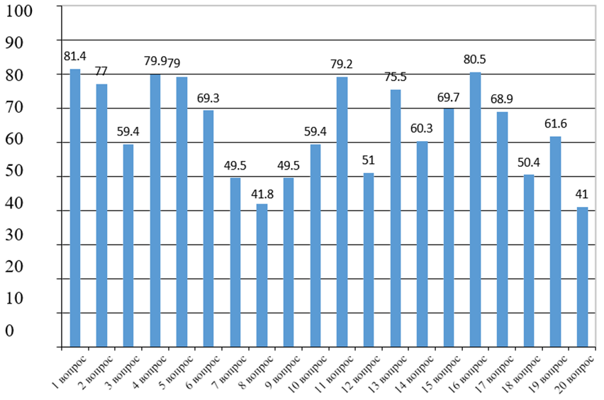 Рис. 1. Результаты анкетирования педагогического персонала БФ ФГБОУ ВО "ВГТУ", %