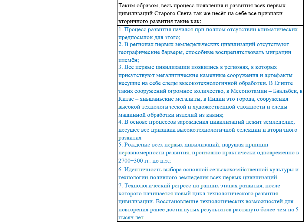 - Особенности эволюции первых цивилизаций Старого Света [7, с. 52], несущие на себе все признаки вторичного развития;