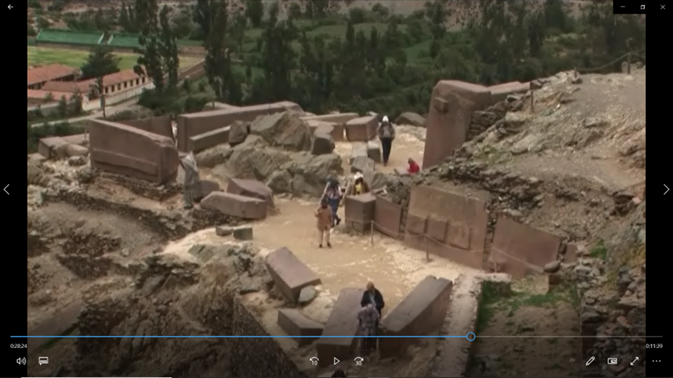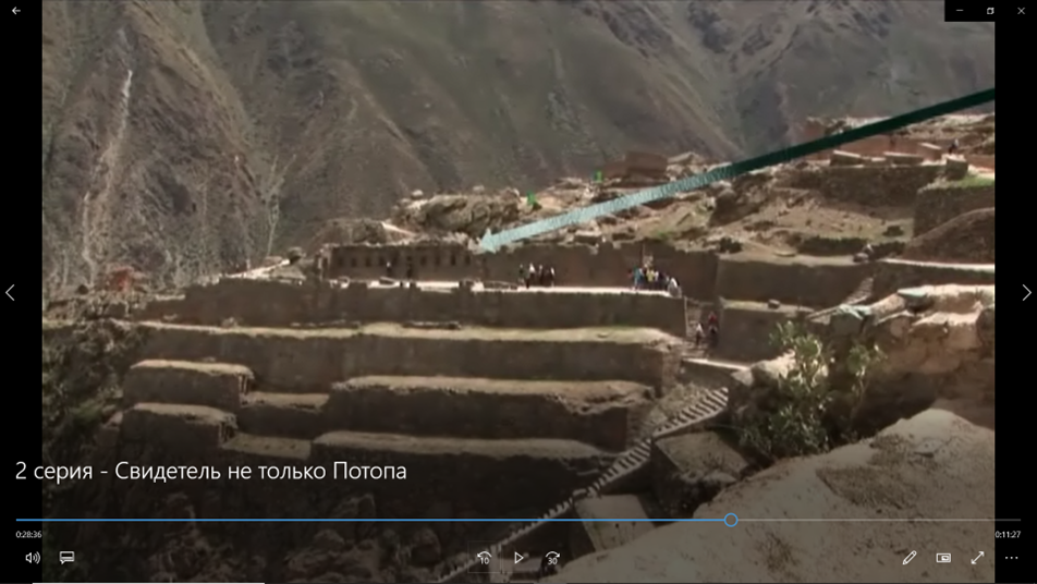 - Прослеживаются явные следы разрушения от удара волны [18] и в перуанском городке Ольянтйтамбо, (рис. 5 и 6) расположенном на реке Урубамба (образует приток Амазонки реку Укаяли). Город расположен на высоте более 2800 метров над уровнем моря, на расстоянии более 350 километров от побережья океана и прикрыт от него горными хребтами Анд высотой более 4000 метров. Сам факт того, что волна перехлестнула через хребты Анд и привела к разрушениям в Ольянтайтамбо, свидетельствует о масштабе данного катастрофического события.