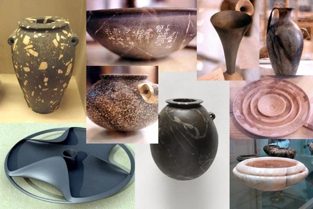 Рис. 13. Бытовые предметы из Саккарской коллекции. Официальной наукой предметы оцениваются не позже I-II династией 3218–3035 годы до н. э.) Фото из открытых источников
