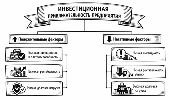 Таким образом, схема наглядно демонстрирует прямую зависимость уровня инвестиционной привлекательности от состояния ключевых финансовых показателей предприятия.