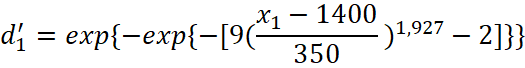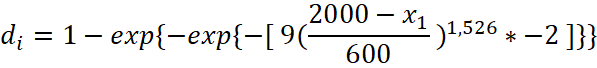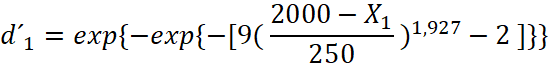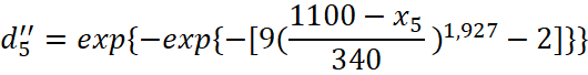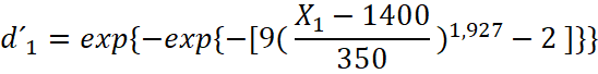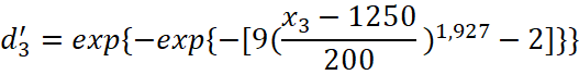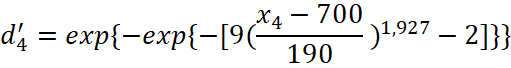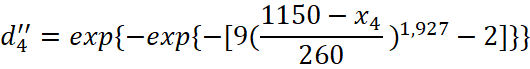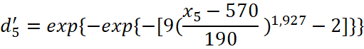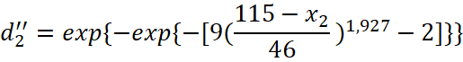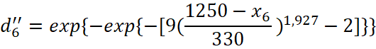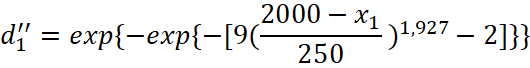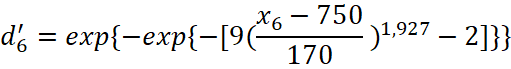 Указанные числа практически совпадают с центрами соответствующих гистограмм /2/, следовательно, при формировании частных di – функций они будут иметь возрастающее – убывающий вид с максимумом в точке среднего арифметического /3/, формулы их ветвей рассчитаны по методике [5, с. 104-118; 6, с. 87-89] и представлены в аналитическом виде (1)–(12), а обобщенная D – функция – в виде (13), причем веса di (показатели степеней в подкоренном выражении) найдены экспертным методом весовых коэффициентов важности [4; 5, с. 104-118]: