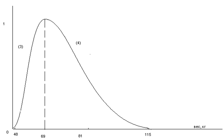 Другое дело, если требуется отобрать группу юношей для занятия баскетболом (волейболом или другими групповыми играми). Здесь одним из главных требований является большой рост, остальные параметры менее важны. Следовательно, di – функцию роста следует перестроить под это требование /4/ и соответственно ее формулу на: