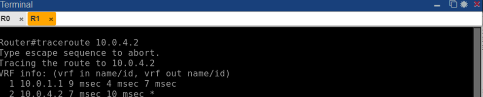 Рис. 9. Трассировка маршрута от маршрутизатора R1 к R4