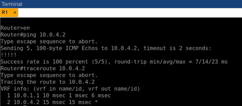 Рис. 4. Результаты команд ping и traceroute от маршрутизатора R1 до R4