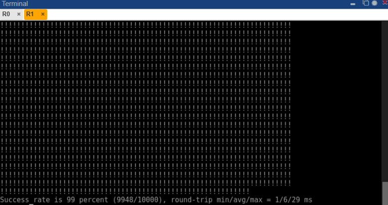 Рис. 6. Результат непрерывного пингования (10000 пакетов) с R1 до R4 через OSPF