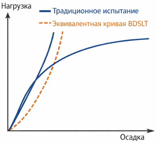 Вместе с тем деформационная схема работы сваи при BDSLT принципиально отличается от схемы при top-down испытании. Перемещения фиксируются относительно внутренних элементов сваи, а не относительно поверхности земли, что приводит к необходимости дополнительной обработки и интерпретации полученных данных.