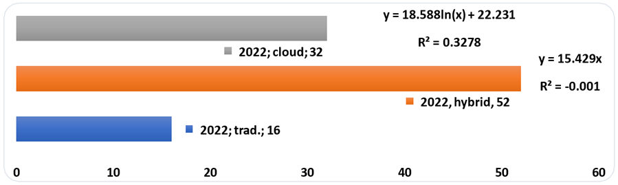 В статье мы подготовили опрос для проведения исследования среди преподавателей вузов по вопросу перехода к облачному обучению. Согласно опросу, в 2022 году 32% преподавателей предпочитают облачное обучение, 52% – гибридное обучение и 16% – традиционное обучение.