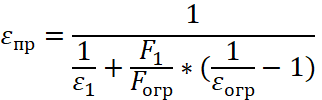 (5% излучения уходит на пол, который не участвует в теплообмене с воздухом). Приведенная степень черноты: