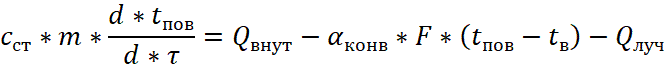 Конвективная теплоотдача от поверхности корпуса и трубопроводов рассчитывается по закону Ньютона-Рихмана: