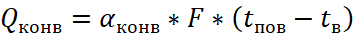 – коэффициент конвективной теплоотдачи, Вт/(м²°C); F – площадь поверхности, м²;