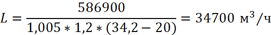 Необходимый расход приточного воздуха для ассимиляции явных тепловыделений:
