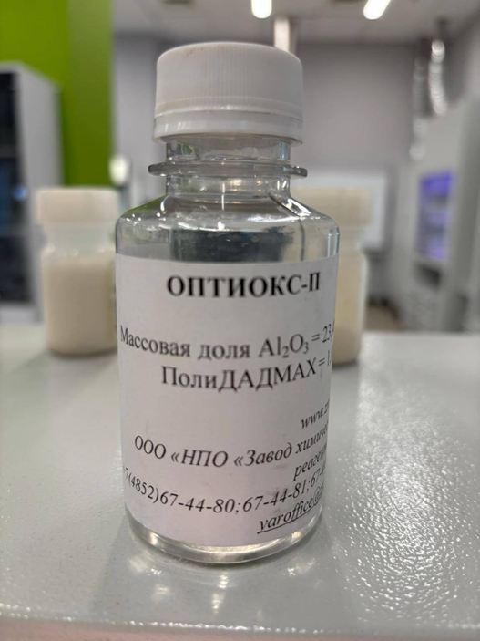 Далее в исследовании был использован другой реагент – композиционный реагент ОПТИОКС‑П производства ООО «НПО «Завод химических реагентов»». Данный реагент представляет собой многокомпонентную композицию на основе соединений алюминия, предназначенную для процессов коагуляции и флокуляции в системах водоподготовки и очистки сточных вод [6].