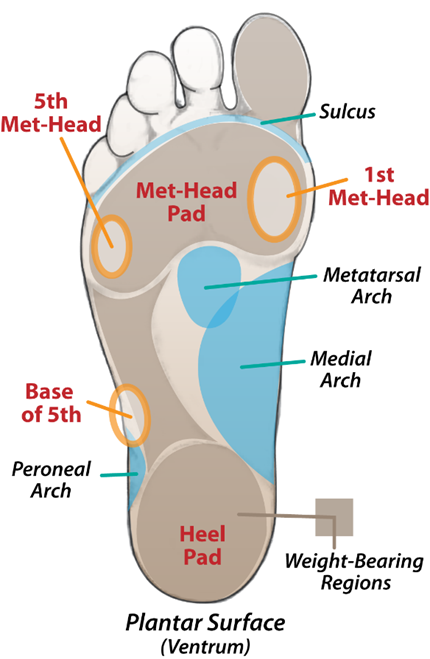 Рис. 2. Опорные зоны и ориентиры подошвенной поверхности стопы [4]