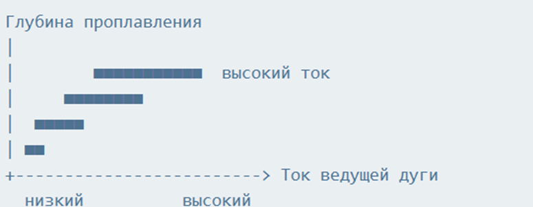 Ниже приведены условные ASCII‑графики основных зависимостей, наблюдаемых при тандемной GMAW сварке. Они не являются чертежами, но наглядно иллюстрируют типичные тенденции (рис. 2).