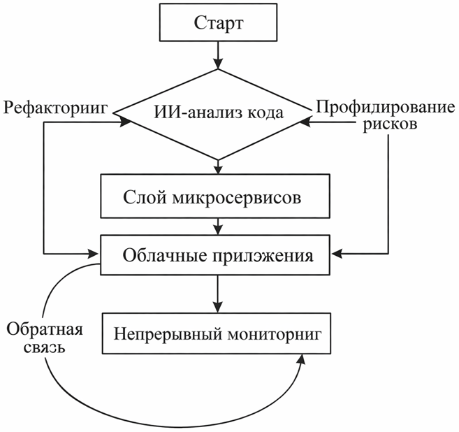 Интерпретация данных, представленных в таблице 2, позволяет заключить, что применение систем искусственного интеллекта существенно превосходит традиционные подходы, прежде всего по показателю полноты выявления событий (recall). Данное преимущество имеет принципиальное значение для авиационной сферы, поскольку обеспечивает минимизацию вероятности пропуска критически значимых инцидентов и, следовательно, повышает общую надежность контуров мониторинга и реагирования. В рамках проведенного исследования была предложена модель «Фабрики модернизации», отражающая логику поэтапной трансформации устаревшего программного обеспечения в облачно-ориентированную среду с использованием инструментов искусственного интеллекта (рис. 1).