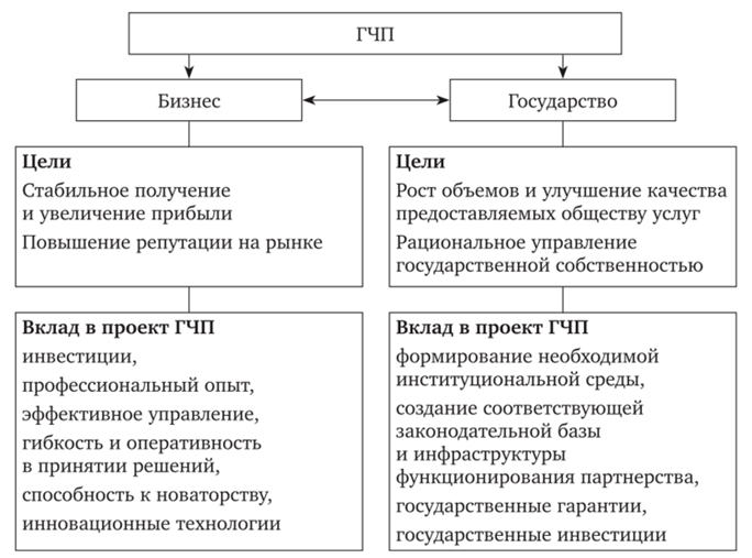 Рис. Цели и вклады государства и бизнеса при реализации проектов ГЧП